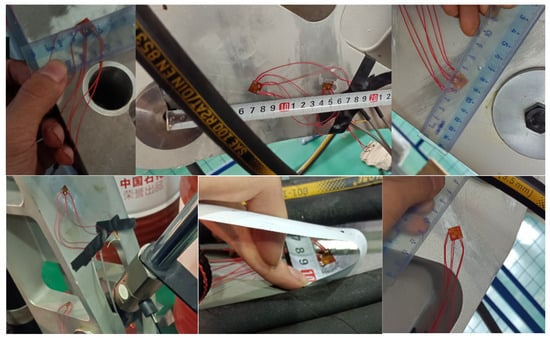 (3) Cautions: In order to improve the accuracy of the experiment, the measurement locations should be polished before the patching, and, in addition, the stress concentrations appearing in the finite element analysis should be selected as much as possible when patching the strain gauges, such as axial holes and other easily damaged parts. The location of the patch point should be recorded. Some patch point locations are shown in Figure 33.