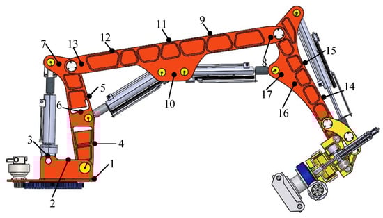 Contrarily, industrial robots have greater flexibility and finer operations, but their drawbacks are insufficient load capacity and more stringent environmental requirements. Conventional construction machinery and equipment have strong environmental adaptability and large load capacities, but their disadvantages are relatively bulky and inflexible activities. A hydraulic machinery arm with seven degrees of freedom is thus constructed as follows Figure 1 after combining the benefits and drawbacks of industrial machinery equipment and industrial robots. The rotary base, boom, two arms, three arms, rotary hammer joint, swing, and end rotary joint are the key parts.