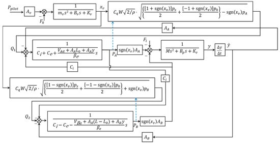 The mathematical model of the control valve is represented by the spool dynamics equation and the inlet/outlet flow equations of the control valve [,,]:
