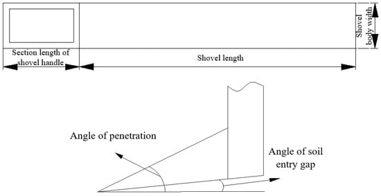 Here, X1, X2, X3, and X4 are the penetration angle, soil entry gap angle, shovel body width, and shovel length, respectively.