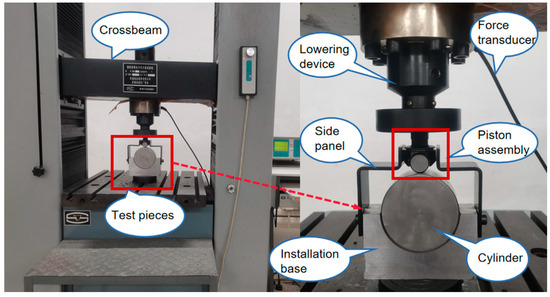 To verify the correctness of deformation calculation, a test bench was built, as shown in Figure 10. The design principle of the test bench is based on the actual working situation of the roller stroke ring. And the contact between roller stroke rings is simplified as the contact between two cylinders (based on the Hertz contact theory). The material of the two cylinders is the material of the stroke ring and piston.