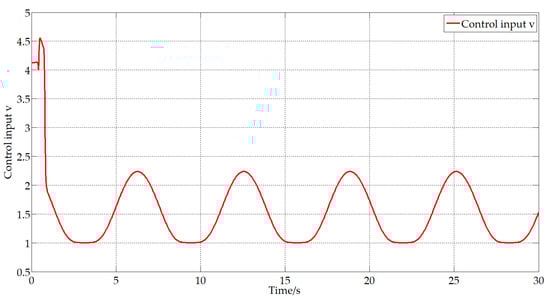Based on the aforementioned theoretical research, the input and output of the differentiator and the control input signals v and ω can be obtained, which are shown in Figure 7, Figure 8 and Figure 9.