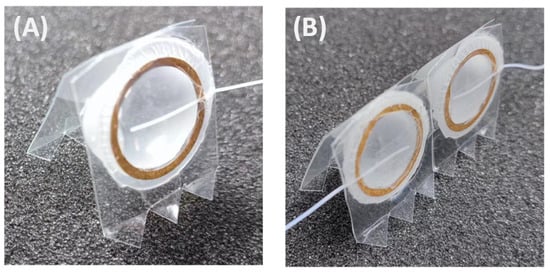 The tailormade robot’s power supply is electro-pneumatic and provides direct actuation of the robot without using any control valves (Figure 5). A step-motor (20k-2M-50.8) with its dedicated driving board (DM422) is supplied by a 24 V electric power supply and drives back and forth a ball-screw mechanism attached to a 10 mL metal syringe that is encapsulated into a 3D-printed mount (the syringe’s piston has a 16 mm diameter and a 50 mm stroke). The syringe port is connected to the soft actuator via a pneumatic tube, controlling the robot’s motion. The dual-actuator version of the robot requires two electro-pneumatic power supplies so that each soft actuator can be driven independently.