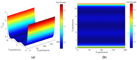 Higher risk field strength results from an increase in the potential risk when the TV drives up to the roadside [41]. Since the roadside cannot be crossed and the roadside risk field does not vary dynamically, it is solely determined by the vehicle’s longitudinal position. The roadside risk field can be calculated using the following formulas: