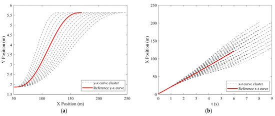 In the X-Y coordinate system, a quintic polynomial represents the variations of lateral position (x) and longitudinal position (y) over time (t). To take into account the dynamic changes in the surrounding traffic environment, this paper converts the trajectories into y–x curves and x–t curves, where y–x curves represent the change in longitudinal position (y) with respect to lateral position (x), and x–t curves depict the change in lateral position (x) over time (t). Essentially, this approach converts the original three-dimensional trajectory planning problem involving x–t and y–t into a two-dimensional problem represented by y–x and x–t.