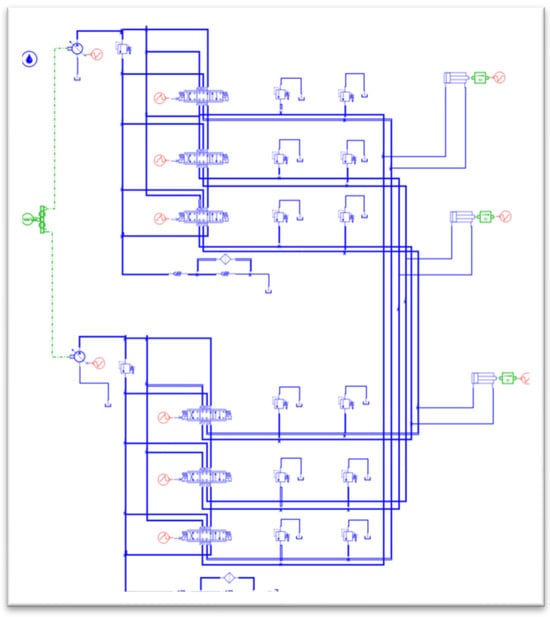 As depicted in Figure 3, the hydraulic control system of the demining robotic manipulator was primarily composed of two core components: the steering mechanism and the actuation device. The driving system of the three-joint demining robotic manipulator consists of two key parts, namely the rotational mechanism and the actuation mechanism. The function of the rotational mechanism is to assist the actuation mechanism in moving within the spatial field, and its working principle is as follows: hydraulic pump, solenoid valve, and rotary motor, to achieve rotation. The actuation mechanism, on the other hand, is composed of a series of hydraulic components responsible for performing specific actions, with its workflow being hydraulic pump, solenoid valve, and arm cylinder, to achieve motion of the mechanical arm.