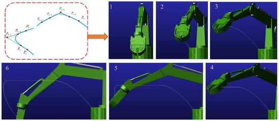 At the instantaneous points between adjacent stages, sudden turns cause the motion trajectory to exhibit abrupt angular transitions, and the demining robotic manipulator experiences internal instantaneous impacts. Therefore, it is necessary to smooth the motion trajectory by applying constraints, adopting B-spline curve interpolation for smoothing.