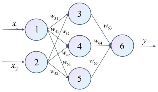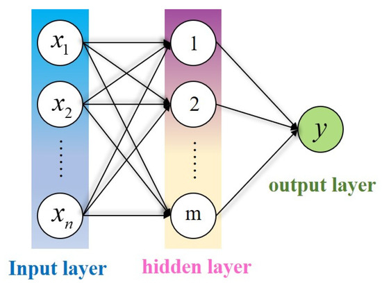 The input vector of the BP neural network is , and the output vector is , with the hidden layer containing h neurons. Let the weight matrix connecting the input layer to the hidden layer be and the weight matrix connecting the hidden layer to the output layer be . Then, the outputs of the neurons in each layer are given by the following [26]: