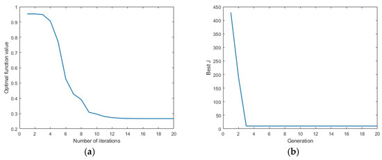 (a) The change in the optimal solution of the PSO-optimized BP neural network with the number of iterations. (b) The optimal fitness of the PSO evolved with the number of generations.