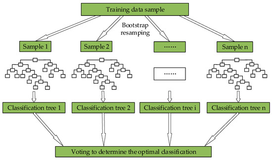 The construction process of the random forest model is shown in Figure 7. Suppose the dataset contains H samples, and each sample has M features. The specific process is given as follows: