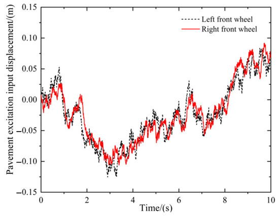 Pavement excitation displacement of the left front wheel and the right front wheel.