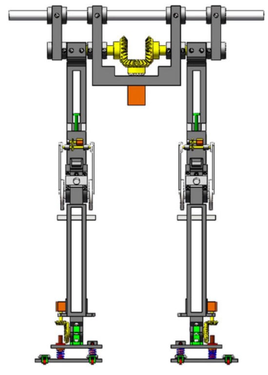 The structural design of the biped robot is mainly divided into three parts: hip joint, knee joint, and ankle joint. The overall design height of the biped robot is more than 0.85 m, and the number of degrees of freedom for the joints is 6. The overall structural design of the robot is shown in Figure 1: