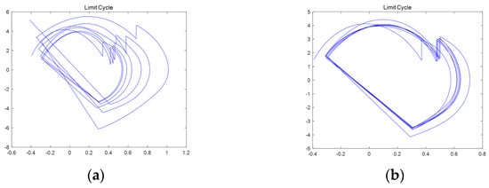 The calculated global optimal value was substituted into the hybrid dynamic mathematical model of the biped robot, and the limit cycle of the biped robot was obtained, as shown in Figure 8.