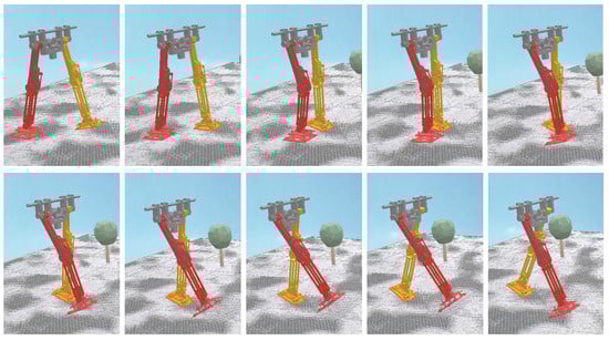 Using the joint data from Figure 10, the stick figure of the biped robot walking in a flat environment was obtained. As shown in Figure 11, during the walking process, the robot continued to walk stably and the walking state switched smoothly.
