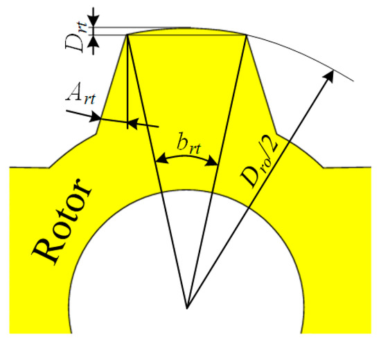 The shape of the rotor salient pole refines into the structure shown in Figure 7. The rotor salient pole top arc height Drt and rotor salient pole side angle Art are introduced to explore the possibility of reducing the torque ripple.