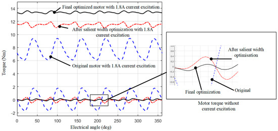 The torque characteristics before and after optimization in one electrical period are shown in Figure 11.