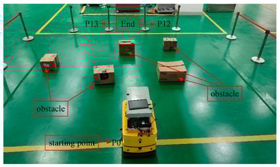 After the simulation experiment was completed, in order to verify the effectiveness of the improved path-planning algorithm in real industrial environments and ensure its effectiveness and reliability in different application scenarios, we set up a validation environment in a standardized logistics warehouse. The validation environment consists of the following parts: