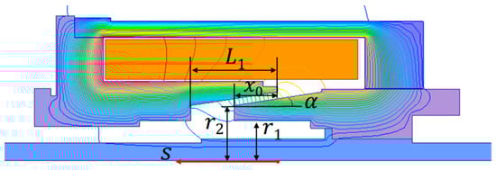 - Yuan, X.; Ling, H.; Qiu, T.; Zhou, J.; Zhao, R. Optimization for a proportional electro-magnet with high accuracy utilizing finite element method. Int. J. Appl. Electromagn. Mech. 2021, 65, 267–280. [Google Scholar] [CrossRef]