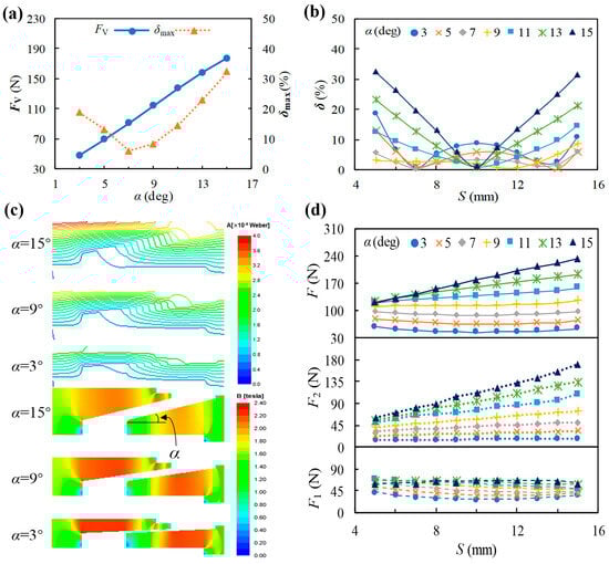 - Wang, S.J.; Weng, Z.D.; Jin, B.; Cai, H.X. Multi-objective genetic algorithm optimization of linear proportional solenoid actuator. J. Braz. Soc. Mech. Sci. Eng. 2021, 43, 60. [Google Scholar] [CrossRef]