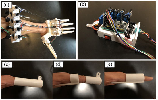 - Popov, D.; Gaponov, I.; Ryu, J.H. Portable exoskeleton glove with soft structure for hand assistance in activities of daily living. IEEE ASME Trans. Mechatron. 2017, 22, 865–875. [Google Scholar] [CrossRef]