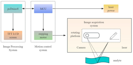 The image processing system includes pcDuino8 and TFT LCD screen components. pcDuino8 acts as the core component of this integrated system by facilitating linear light stripe image processing, spatial coordinate transformation, and object surface point cloud reconstruction, while also sending control commands to the MCU (Microcontroller Unit). Simultaneously, the TFT LCD screen provides users with an intuitive human–machine dialogue interface that simplifies parameter configuration for seamless visualization and automation throughout.