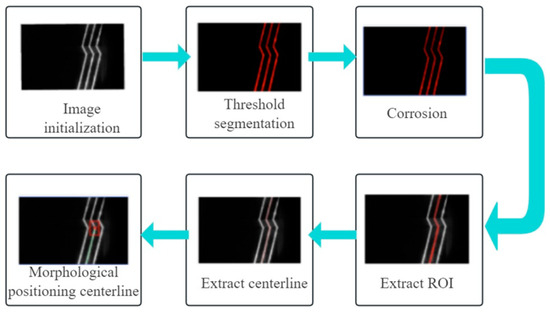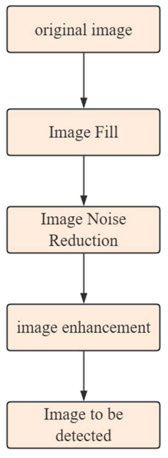 Several important processes can be combined in the image pre-processing. A missing image can be filled using bilinear interpolation, then the noise in the image can be cleared by median filtering. Additionally, a sine function is applied for image enhancement. After these pre-processing operations are performed in raw weld images, the quality of the images is substantially improved in clarity and color contrast. The shape of the effective area and other location-specific information contained within the image is more explicit than before, so that it permits better execution of subsequent tasks. This pre-processing workflow is visualized in Figure 7.