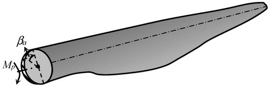 The pitch actuation entails the rotation of blades around their longitudinal axis to adjust the angle of the attack in accordance with the relative wind speed. Hence, pitch dynamics can be described as a rotational motion around the pitching axis, as depicted in Figure 2.