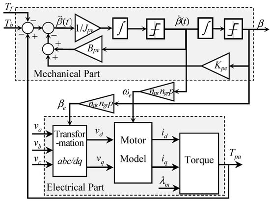The electric part is expressed by using the motor convention in the rotating dq reference frame [21]. The mathematical modelling includes the first-order differential equations