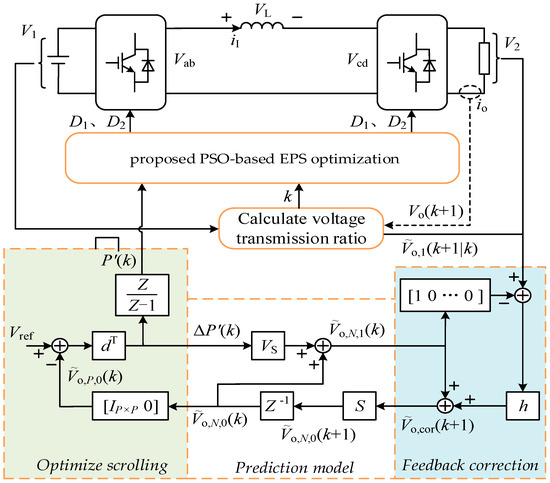 In order to address the above limitations, an optimization method of EPS modulation based on particle swarm optimization (PSO) and dynamic matrix control (DMC) to minimize the current stress and improve the output voltage performance of the DAB converter is proposed in this paper. The subsequent sections of this paper are organized as follows: Section 2 delves into the analysis of current stress and power transmission characteristics of the DAB converter under EPS control; Section 3 presents the integration of the PSO algorithm to mitigate the DAB converter’s current stress, establishing the objective function and outlining the PSO optimization process; Section 4 introduces the IDAB-DMC control strategy, which combines the DMC algorithm with PSO to enhance the DAB converter’s dynamic response while reducing current stress; Section 5 presents simulation and experimental results that confirm the effectiveness of the proposed control method; and Section 6 concludes the paper.