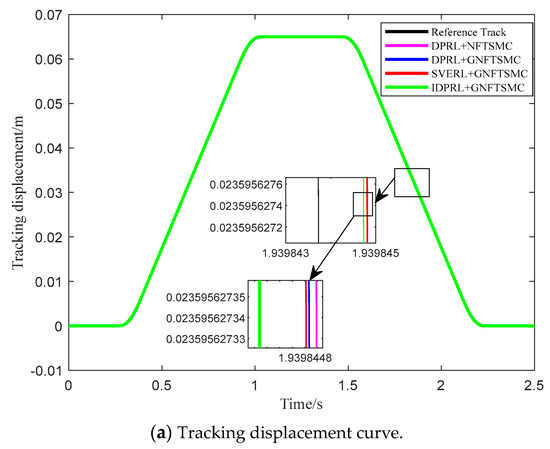 It can be seen from Figure 6a,b and Table 4 that after adding external interference, the average displacement error of IDPL + GNFTSMC is only 14.047 um, which is 15.14%, 15.93% and 16.83% lower than that of DPRL + GNFTSMC, DPRL + NFTSMC and SVERL + GNFTSMC.