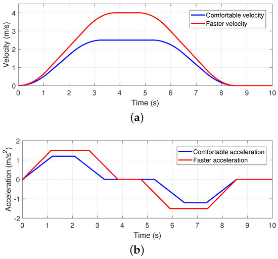 where . To visualize them, the above reference velocity profiles and the corresponding acceleration profiles are shown in Figure 2.