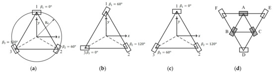 The kinematic models for the three triangular wheel patterns are given in (2)–(4), respectively. Equation (2) is derived based on the published work [20,30].