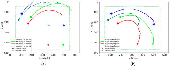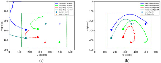 - Firstly, we introduce an asymmetric, time-varying performance function, which ensures that the feature points always remain within the camera FoV by transforming the image feature errors. This method can adjust the system performance more finely, especially in scenes with different sensitivities to positive and negative errors, and it effectively prevents feature point loss due to FoV limitations, ensuring continuous system feedback signal and enhancing stability and convergence of the system.