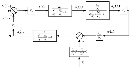 Transfer function block diagram of the pump-controlled motor system.
