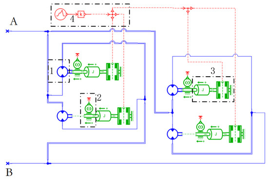 - The interconnecting pipeline between the variable pump and the fixed motor is short, disregarding pipeline losses. The hydraulic pipelines have identical characteristics, and the volume of the pump and motor chambers remains constant;