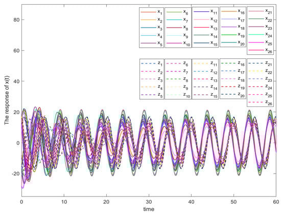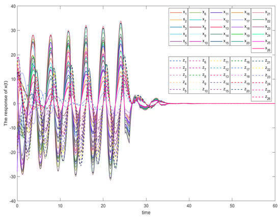 Now, the trajectories of system (31) under control (32) are given in Figure 3. From Figure 3, we can see that system (33) is stable, which verifies the effectiveness of our theoretical results.