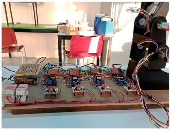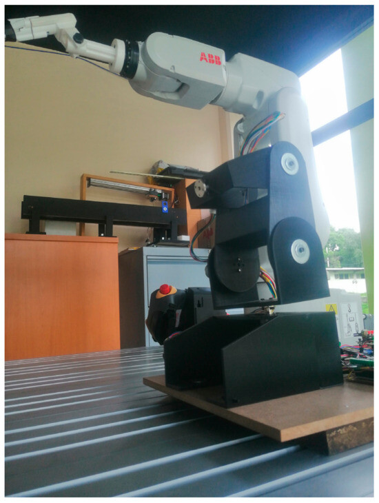 The prototype is manufactured using the additive manufacturing technique (3D printing), and is made of PLA with 70% printing, which gives it the necessary rigidity to support both the weight of the links and the torque of the motors. This feature can be observed in Figure A8 that appears in Appendix A.1.