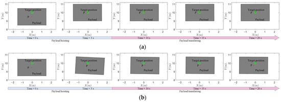 Payload state of the comparative simulation: (a) Proposed controller, (b) EAB controller.