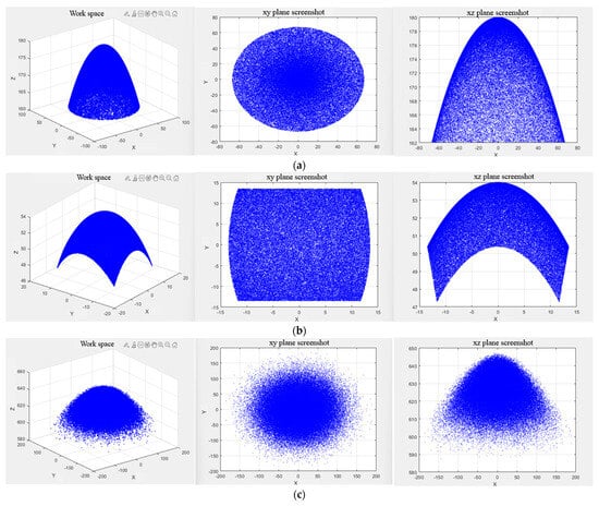The robot workspace is defined as the set of poses that can be reached from an end-effector reference point in the base coordinate system. The workspace solution methods mainly include geometric, analytical, and numerical methods. The geometric method is simple and intuitive, but as the number of degrees of freedom increases, the geometric shapes become very complex and difficult to understand, and it is difficult to express the motion of the robot in three-dimensional space. The analytical method generally adopts the theory of differential geometry to describe and calculate various singular surfaces according to the relationship between the workspace boundary and the singularity of the Jacobi matrix of the robot speed, and then uses the ingestion method and optimization theory to determine whether the singular surface is the boundary of the workspace, and finally calculates the boundary surface. Such a solution process is very complicated and generally not generalized. The Monte Carlo method is a simple, practical, and almost generalized numerical method, which has been widely adopted with the development of computer technology.