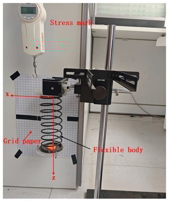 For the physical model, the experimental setup shown in Figure 15 was built under the condition of a single cable drive for the bending test, and the bending results were calibrated and sampled by using grid paper to obtain the bending degree of the soft body under different driving forces.