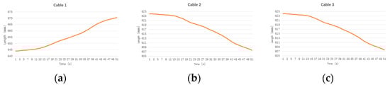 Change in rope length. (a) Length of Cable 1. (b) Length of Cable 2. (c) Length of Cable 3.