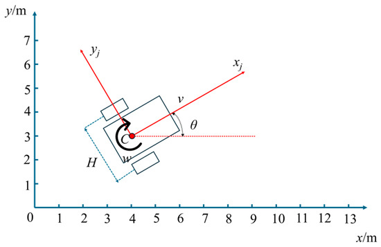 In accordance with the fundamental principles of rigid body mechanics, the kinematic equation governing a two-wheel differential car can be deduced in the following manner [17].