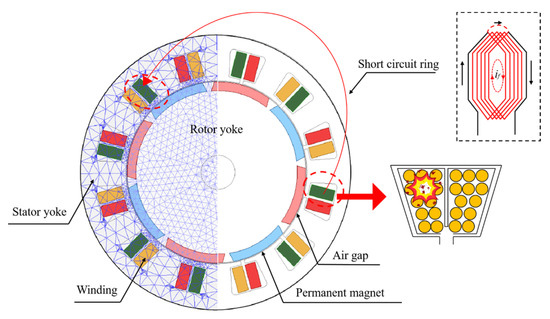 Refs. [9,10] established a turn-to-turn short circuit mathematical model to analyze the correlation between signals such as phase currents, zero sequence voltage signals, and the degree of faults for fault diagnosis. Bifeng [11] et al. established a stator and rotor dual coordinate system for PMSM, analyzed the air gap variation of the motor, and established an unbalanced magnetic pulling (UMP) model under uniform demagnetization and eccentricity faults. They verified the accuracy of the changed mathematical model by means of Maxwell and MATLAB calculations and mutually verified the accuracy of the modified mathematical model. The diagnostic method based on mathematical model analysis has the advantages of high diagnostic accuracy and reliability, but the modeling complexity is high, and the computational volume is large and has other difficulties.