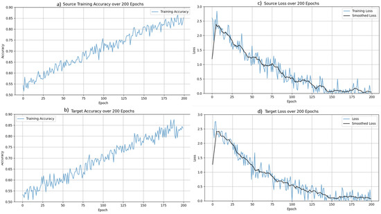 For both the source and target domains, classification loss is computed using the standard cross-entropy loss function. Let and be the predicted and true labels for the source domain. The classification loss is: