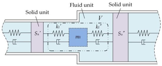 The concept of equivalent stiffness for the fluid unit in contact with the solid unit was introduced in the previous section. In this subsection, the equivalent stiffness is quantitatively calculated. According to the bulk modulus of elasticity theory for a fluid, as described in references [32,33], we let the bulk modulus of elasticity be Ev, defined as follows: