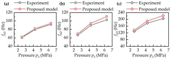Errors compared with the experimental results can be calculated, as shown in Table 7. The average errors of the first-order fn1, second-order fn2, and third-order fn3 are 2.7%, 5.8%, and 6.7%, respectively. Due to the neglect of elastic deformation, pressure loss, and fluid viscosity in the hydraulic lines in the proposed theoretical model, the experimental data are consistently lower than the theoretical results. However, both the magnitudes and trends exhibit good agreement, thereby verifying the accuracy of the proposed model.