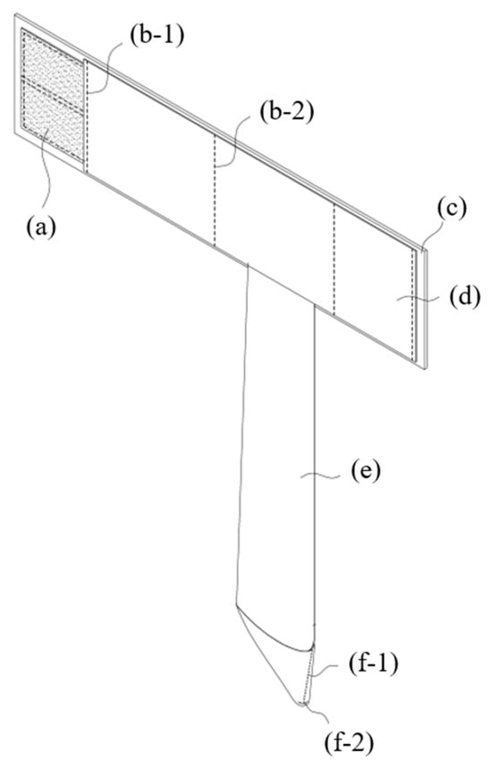 It is composed of Velcro straps (a), fabric (b), and an elastic band (c,d) that wraps around the lower leg and forefoot (Figure 3). The elastic band (c,d) utilized a gray-colored band produced by the Theraband company. A thin plastic piece was attached in the area around the second toe, as shown in Figure 3(d) and Figure 4(f-1,f-2). The inner side of the EN-AFO is described in Figure 3: (a) Velcro strap; (b-1,b-2) joint between elastic band and fabric, (c) fabric, (d) the elastic support, (e) the elastic band wearing the lower leg and forefoot, (f-1,f-2) stiches in the shape of an overshoe in an area where thin plastic was attached (Figure 4) [10]. The researchers individually adjusted the elastic tension for each patient to ensure optimal support, allowing patients to walk with the EN-AFO once before re-assessing and adjusting the elastic tension as needed.