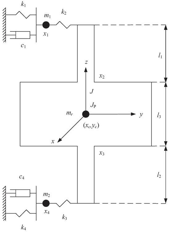 According to rotordynamics, the effect of DR is evaluated by the modal damping ratio of FESS with DR. Consequently, the free vibration of FESS is analyzed in this section. The dynamic model of FESS is shown in Figure 2, and the following assumptions are made to simplify the FESS model: