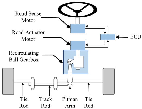 - Fahami, S.M.H.; Zamzuri, H.; Mazlan, S.A.; Zakaria, M.A. Modeling and simulation of vehicle steer by wire system. In Proceedings of the 2012 IEEE Symposium on Humanities, Science and Engineering Research, Kuala Lumpur, Malaysia, 24–27 June 2012; pp. 765–770. [Google Scholar]