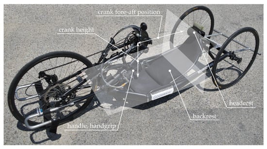 - Litzenberger, S.; Mally, F.; Sabo, A. Biomechanics of elite recumbent handcycling: A case study: Influence of backrest position, crank length and crank height on muscular activity and upper body kinematics. Sport. Eng. 2016, 19, 201–211. [Google Scholar] [CrossRef]